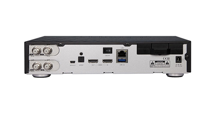 На задней панели ресивер имеет множество вариантов подключения к нему дополнительного оборудования: HDMI - вход, HDMI -выход, USB 3.0, Мини-USB, Gigabit сетевой интерфейс, SPDIF и один выдвижной отсек (высотой 15мм.) для 2,5" жестких дисков любого обьема.