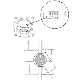 ПРИМЕЧАНИЕ: 1. Для удобства монтажа и обеспечения надежного соединения используйте коаксиальный кабель стандартных размеров (внешним диаметром от 5 до 7 мм). 2. Учтите что коаксиальный кабель низкого качества может свести на нет все преимущества от применения качественных розеток. 3. Следите за направлением подключения коаксиального кабеля к розетке (вход и выход имеет соответствующую маркировку на корпусе розетки в виде стрелок). 4. Розетки всех серий, и оконечная от проходной розетки внешне отличаются только маркировкой, выбитой на корпусе розетки с лицевой стороны. 5. Проверяйте надежность крепления оплетки коаксиального кабеля к корпусу механизма. 6. Выходные гнезда согласно схеме на данный тип розеток